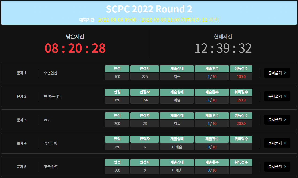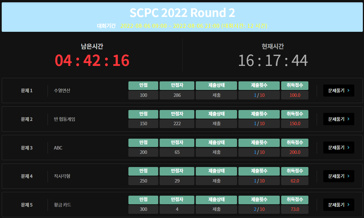 특히 4, 5번 긁는게 너무 쉬워서 순위 가늠이 잘 안되는 대회