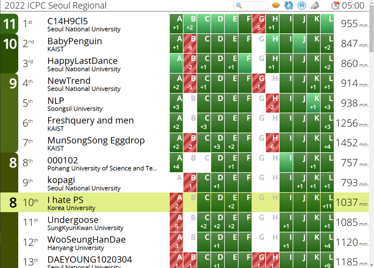 8솔까진 꽤나 할 것 같아서 수상권인 14등도 애매하다고 생각했다.